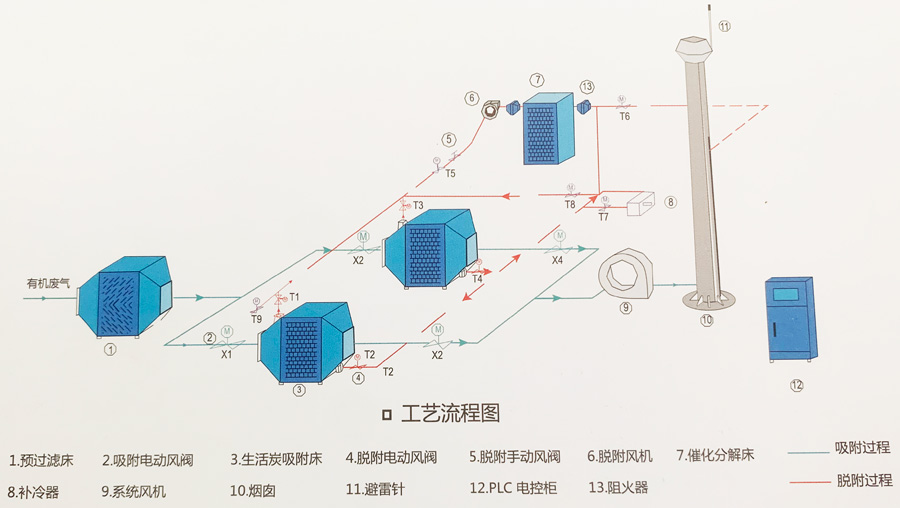 活性炭吸附+催化分解原理流程示意圖